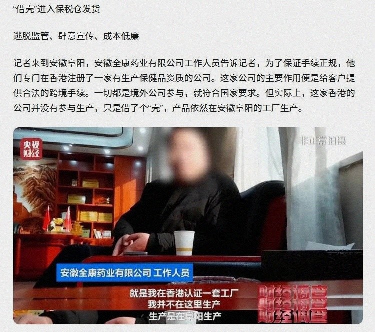 除此之外,很多人对进口产品有盲目追捧,觉得“洋包装”就一定好,“保税仓发货”就一定是正品,这种心理也被骗子精准拿捏,他们在国外注册个空壳公司,把国内小作坊生产的东西拉到保税仓“洗个澡”,就摇身一变成为“进口原装”,价格翻十几倍,还是有人愿意买。