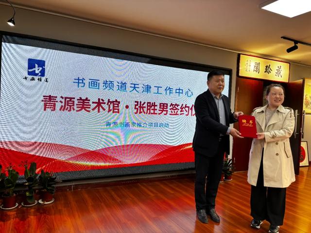书画频道天津新闻中心:2025年4月29日,书画频道天津工作中心内翰墨飘香、群贤毕至。在社会各界的共同见证下,清远美术馆与青年画家张胜男签约仪式暨“清源书画家推荐项目”启动仪式隆重举行。本次活动以“传承经典·美育惠民”为主题,旨在通过艺术名家的示范引领与系统性人才培养计划,推动书画艺术扎根基层、服务人民,彰显新时代文艺工作者的使命担当。