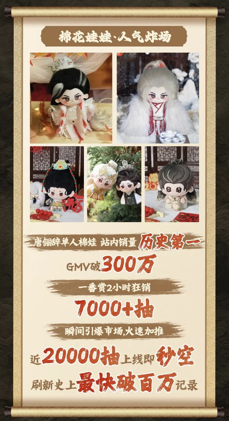 在《长月烬明》《莲花楼》等热播剧集的带动下,实体衍生品的销售额正式迈入千万级别。