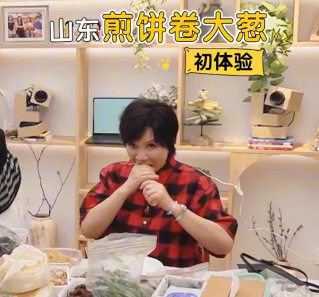 倪大姐作为一个地道的山东人,吃饭怎么能少的了煎饼卷大葱呢。