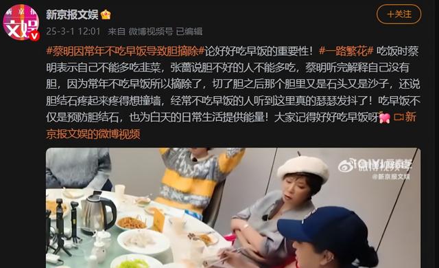 在今年年初,蔡大姐在综艺中透露,她的胆已经被摘除了。