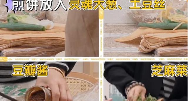 这些菜裹着酱用煎饼这么一卷,一道地道的山东主食就做好了。
