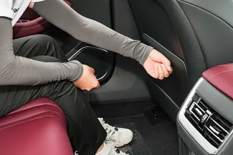 空间尺寸是这款车的一个卖点,红旗H5的车身长宽高分别为4988mm、1875mm、1470mm,轴距长度为2920mm,实际的空间完全不输迈腾,就拿1米6的女性用户来说,坐在后排腿部空间足足有50cm,能轻松翘起二郎腿,而且后排地板中间的凸起也不高,满载也丝毫没有压力。红旗H5毕竟是一台豪车,车内的做工用料比较考究,酒红色的主色调也营造出轻奢的感觉,加上可开启式全景天窗、手机无线充电、座椅加热/通风、丹拿音响、氛围灯、前排隔音玻璃等配置,相信能够给用户带来一个高端舒适的驾乘环境。