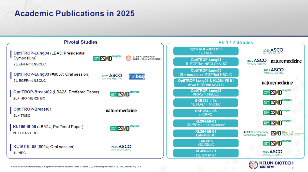 伴随管线的多线并进,科伦博泰的学术影响力也开始在国际舞台集中显现。2025年,其多项关键研究密集亮相ASCO、ESMO等顶级学术会议,并发表于NEJM、Nature Medicine、BJM等权威期刊,标志着其临床数据质量与研究深度已进入全球一流评价体系。