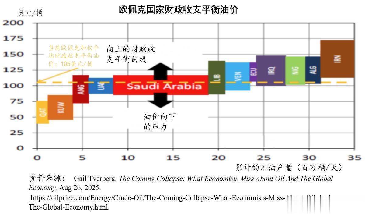 中产收入下降、打压通膨和高税收等政策都会抑制石油需求,欧佩克需要更高油价维持财政平衡和石油生产,数年过度发展之后即将迎来崩溃。