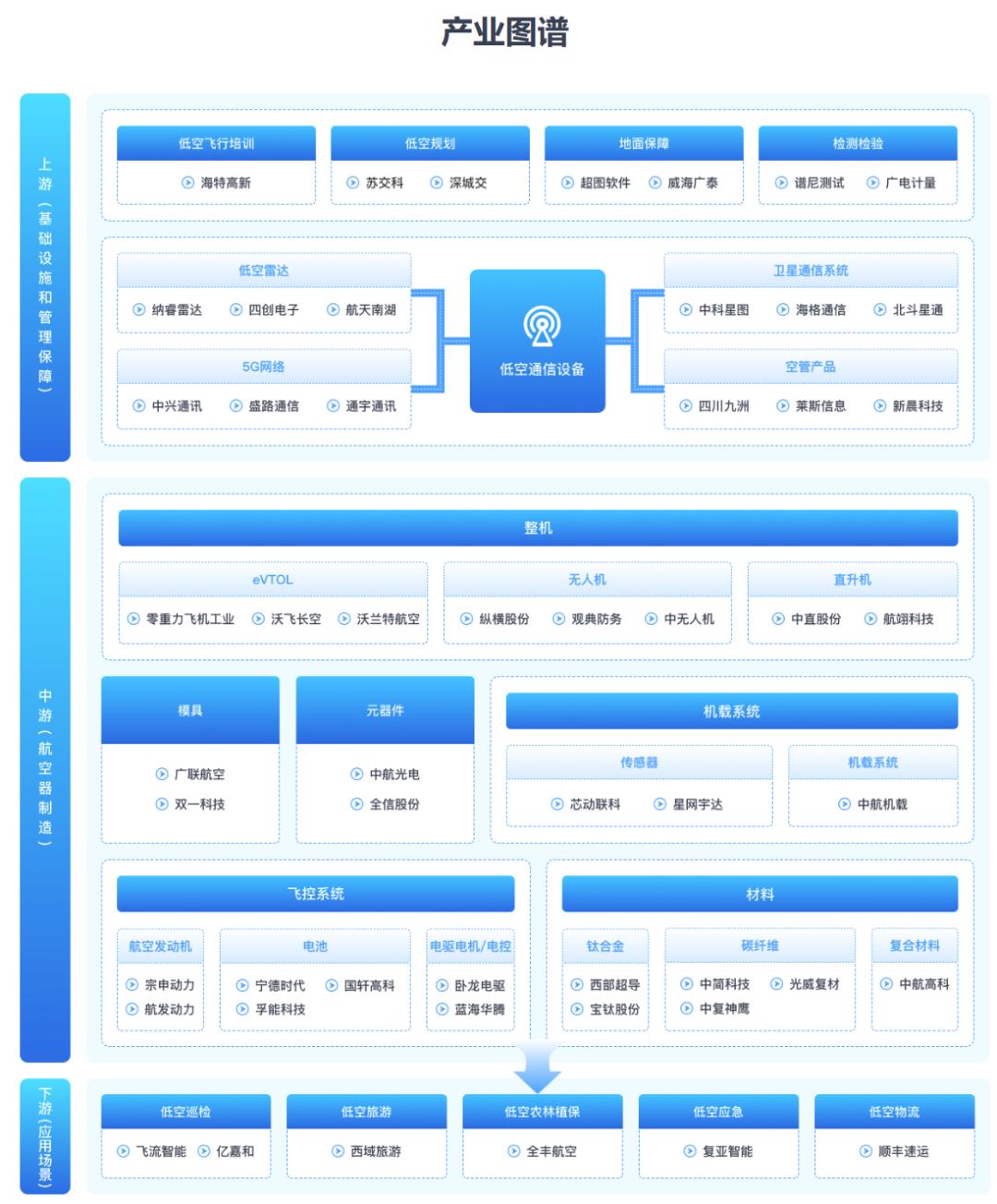 简单来说,低空经济是以通用航空产业为主导的经济活动,涉及低空飞行、航空旅游、科研教育等行业和应用产经,产品包括eVTOL、无人机、直升机等。再往上游追溯,还涉及卫星通信系统、低空雷达等。