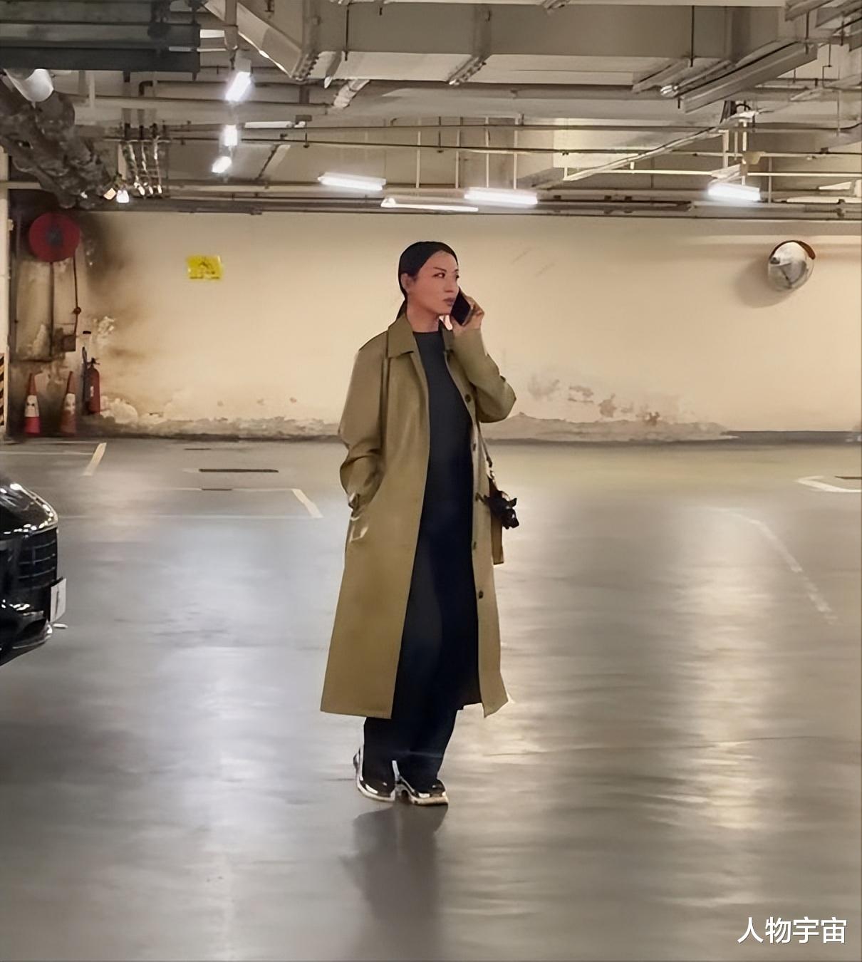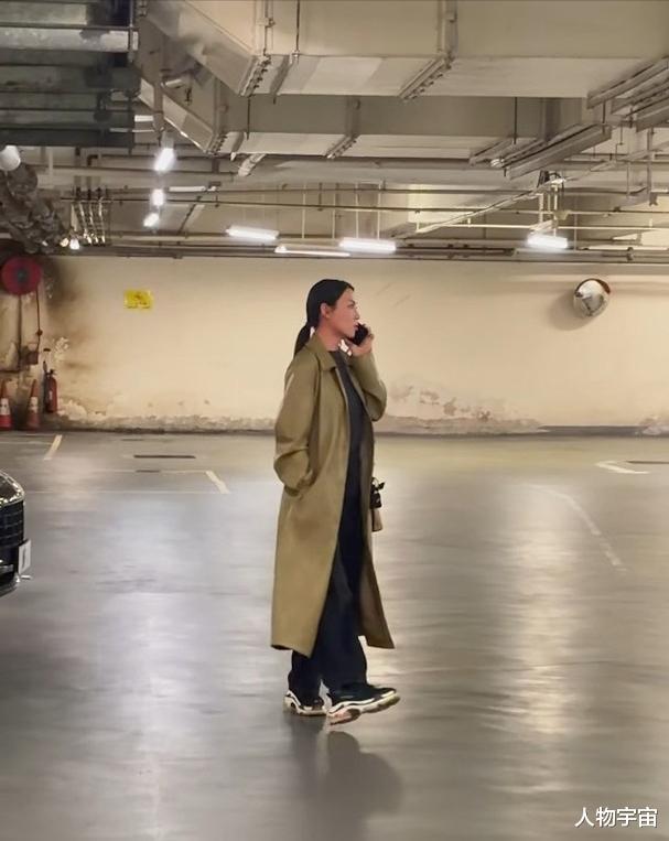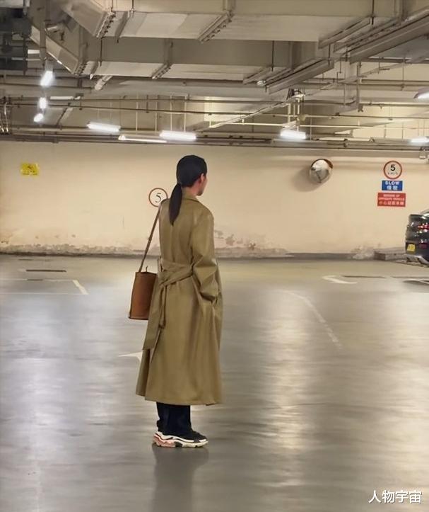 视频中的陈炜,正独自在停车场取车。她扎着干练的低马尾,化着薄薄的淡妆,身穿一件卡其色长款风衣,内搭简单的黑衫黑裤与运动鞋。即便打扮如此低调,却难掩浑身散发的强大星味。