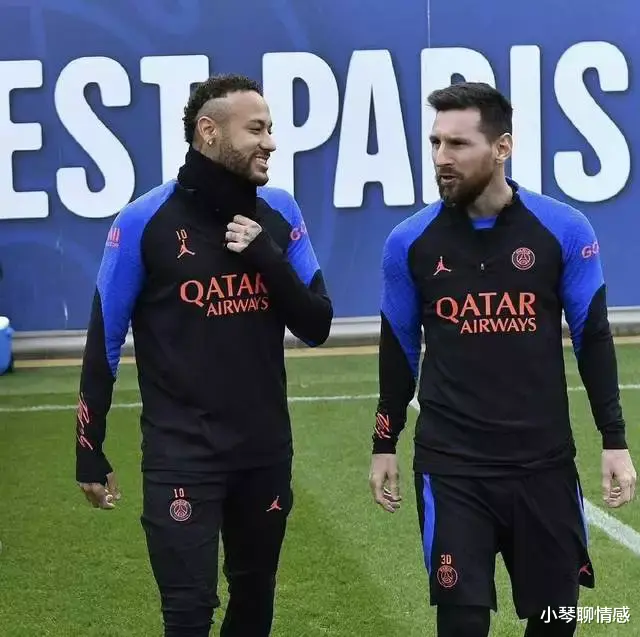 梅西在训练中进行了一些有球训练找节奏,并且和内马尔聊天。