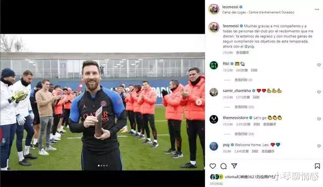 梅西在社交媒体发文,感谢俱乐部以及队友对于自己归队的欢迎:“非常感谢我的队友以及俱乐部的所有人给予我的欢迎,我们回来了,我们会继续与巴黎一起期待着去实现本赛季的目标。”