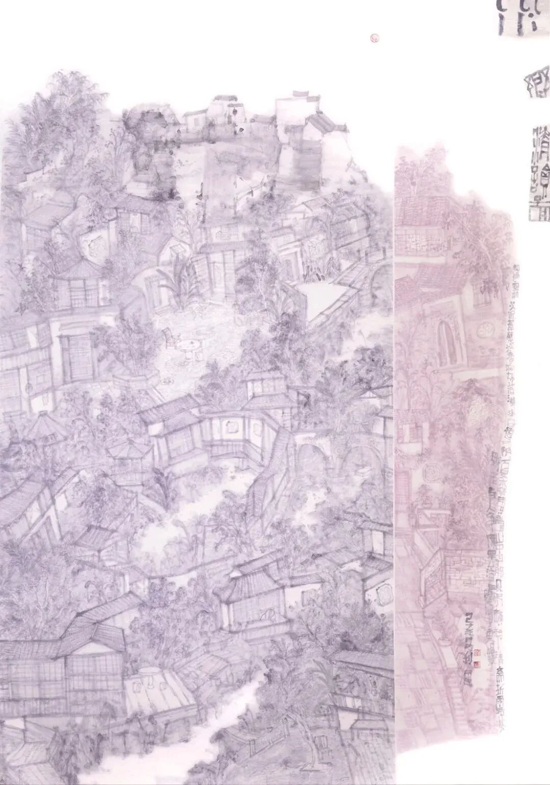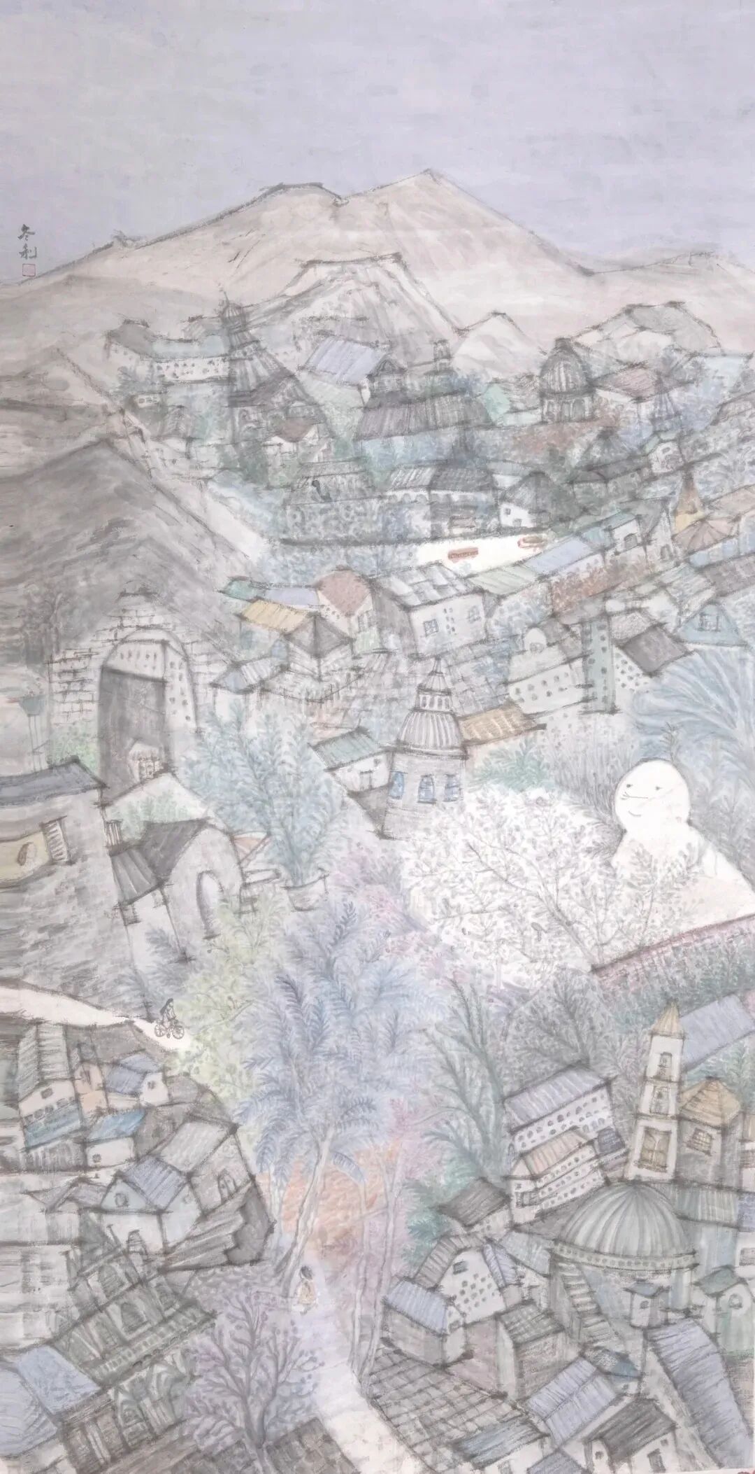 在求学的七年里,我以宋元丘壑为基,明清笔墨为径,将斧劈皴擦、积墨层染的功力深研入骨。可随着技法愈深,困惑愈深:若山水止于形貌之肖似古人笔墨,该如何承载现代人的情感?直到某日翻看到女儿的画稿,画中大山幻化成七彩城堡、茂密森林枯枝化作精灵世界——那一刻如醍醐灌顶,自己内心的童真也如梦初醒,发现了内心的净土才是破茧重生的密钥。