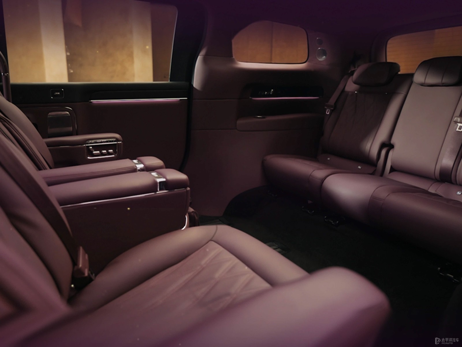 车内也非常奢侈,看齐尊界S800,采用了绒霞紫内饰配色,配有NAPPA头层真皮座椅、天然实木饰板、晶钻切工水晶的旋钮等高端材质。配置同样很顶,目前已知会配备二排真双零重力座椅,支持45度、90度和180度多角度旋转,更有首创的怀抱式安全气囊。