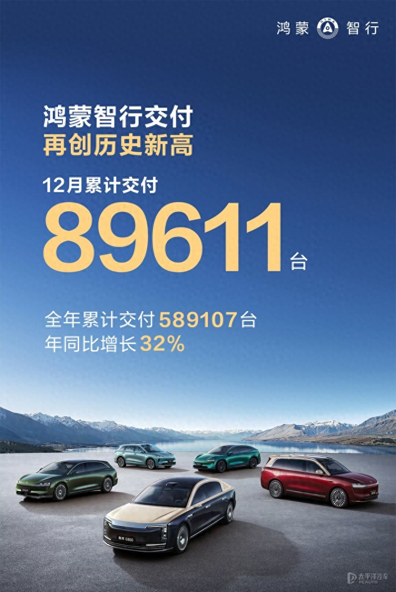过去2025年,鸿蒙智行应该是被大家讨论最多的一个品牌,市场声量和热度一度盖过小米和雷军,市场反馈也非常积极,全年累计销量589,107辆,同比增长32%,单月销量最高接近9万辆,稳居新势力第一,且成交均价高达39万元,稳居高端新能源头部地位。