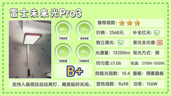大路灯护眼灯第八名:雷士未来光Pro3;支持2700K–5000K色温调节。