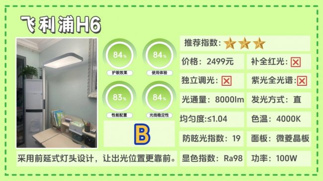 大路灯护眼灯第九名:飞利浦H6;采用前延式灯头设计,让出光位置更靠前。