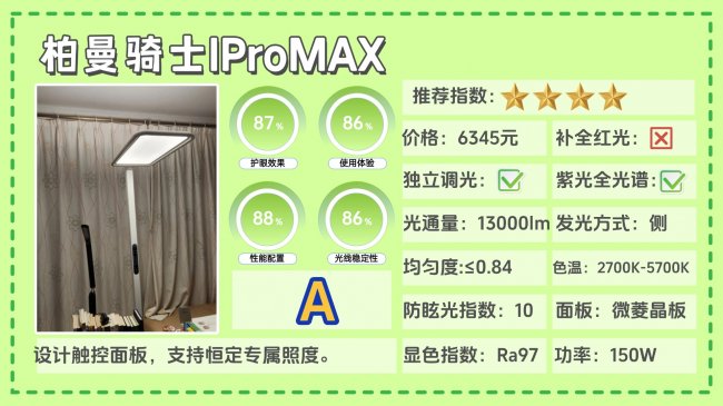大路灯护眼灯第三名:柏曼骑士I ProMax;设计触控面板,支持恒定专属照度。
