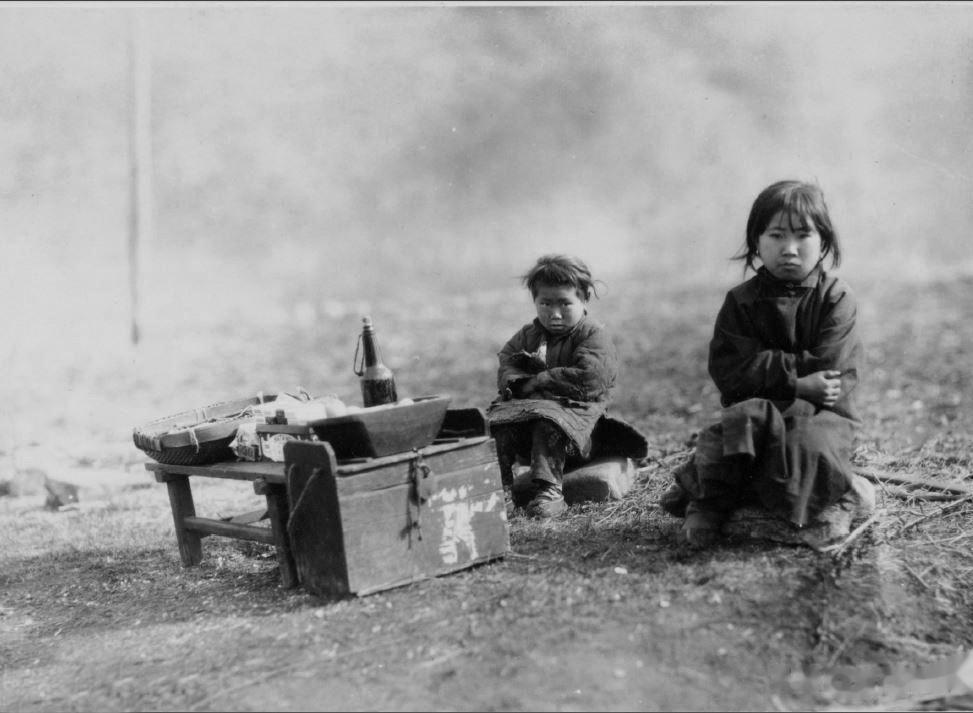 30年代,岔沟门路旁有一对姐弟俩,正在摆摊卖东西。看桌上摆放的,很像是当地一种特色小吃。姐弟俩看到有人拍照,感到很好奇。