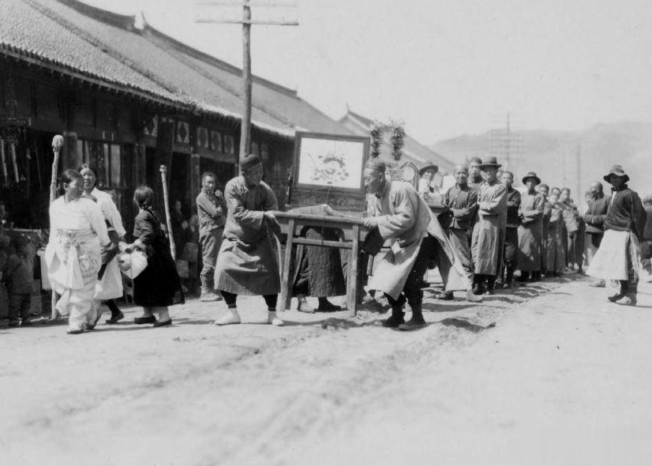 1930年,岔沟门的大街上忽然热闹起来,原来是一支迎亲的队伍。人们抬着崭新的嫁妆,身后跟着亲朋好友,共同见证新人的幸福时刻。