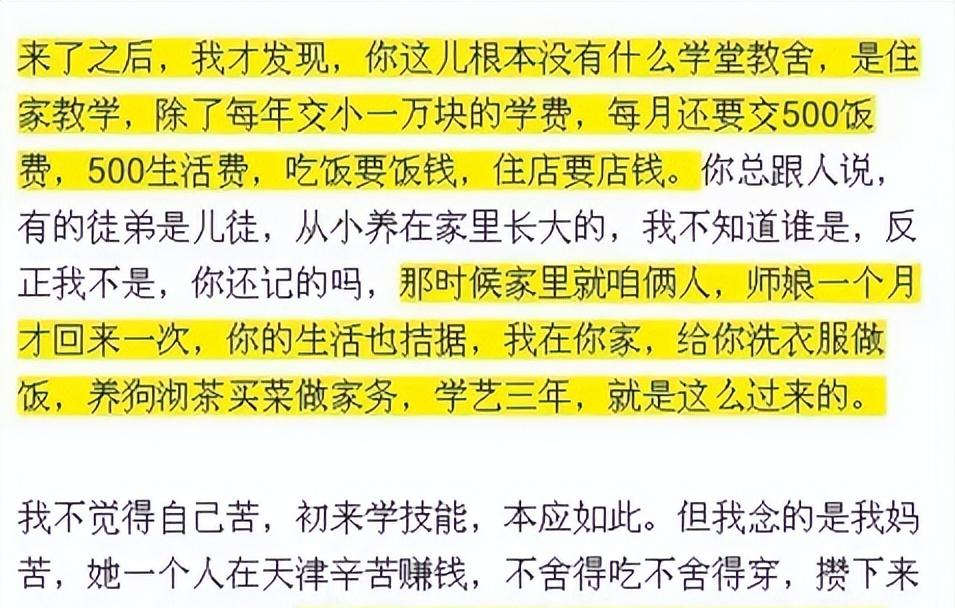 成名后,他在回忆录中表示,那时候,郭德纲要求他每月上交500块钱的饭钱和500块钱的生活费,每年还要交1万多的学费。