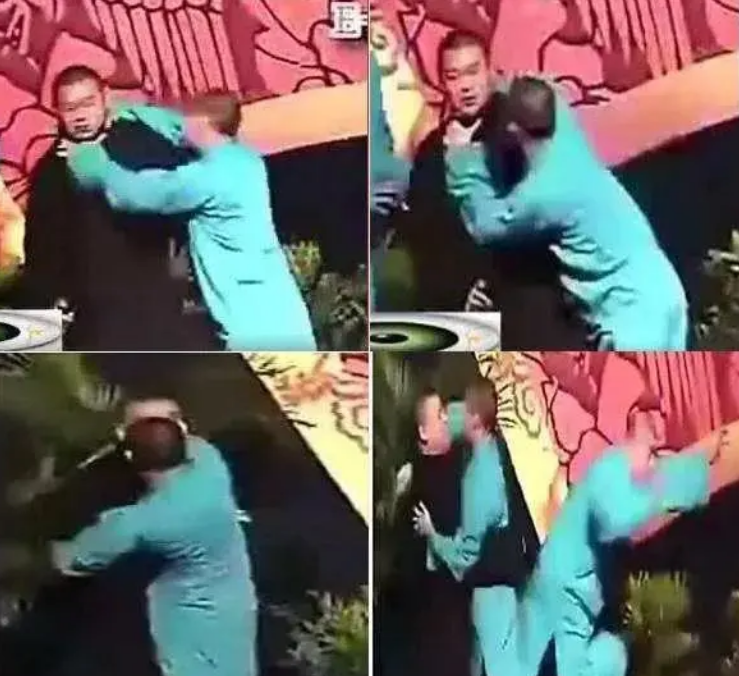二人从台上打到台下,从前台打到后台,直到被师傅郭德纲拉开。