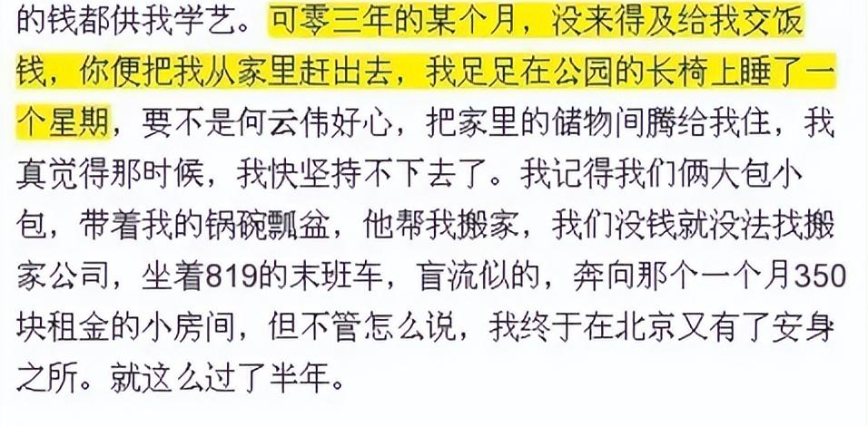 后来,是何云伟收留了他,让他在一个月350块钱的小出租房住了半年。