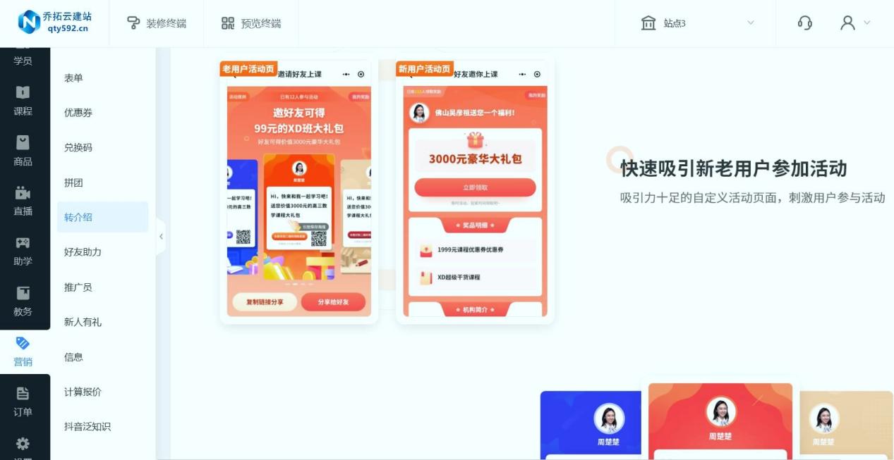特色优势:会员权益可自定义配置,贴合机构课程特点,无后期隐形收费,会员续费可享受阶梯优惠,助力长期锁客。