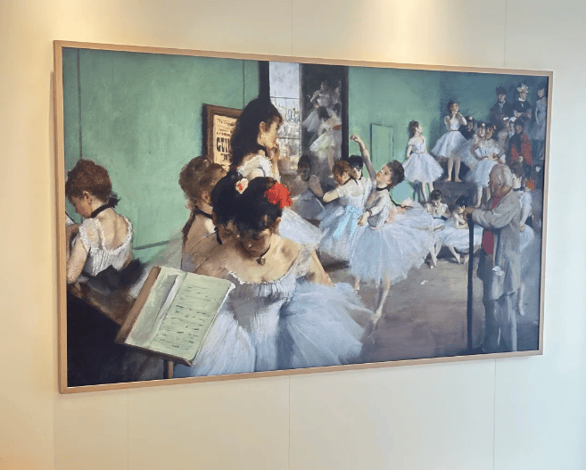 这件礼物彻底重新定义了电视在家居中的角色。其革命性设计在于,当不观看时,它可以化身为墙上的艺术画框。超薄机身配合可更换的磁吸式边框,能完美融入各种家居风格,而哑光屏显技术使显示的画作如同真正的油画布一般,毫无反光,质感高级。用户可以从不断更新的数字艺术库中选择作品,甚至通过AI功能生成专属画作。