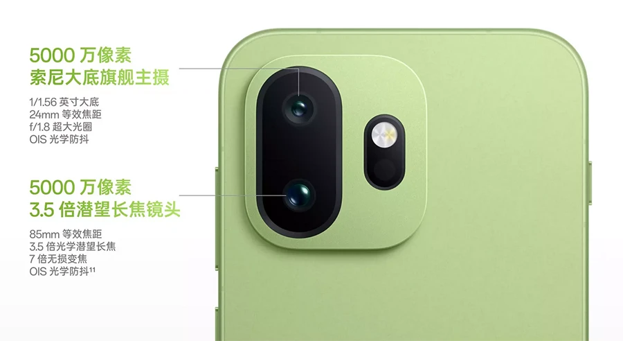 过往的小屏手机往往在影像和电池上“缩水”,但一加15T显然不打算妥协。影像系统方面,它采用了双主摄配置:一颗是5000万像素的索尼旗舰大底主摄(IMX906),支持OIS光学防抖与全像素全向对焦;另一颗则是极为罕见的5000万像素3.5倍潜望长焦镜头。这颗长焦镜头采用了85mm黄金人像焦段,支持7倍无损光学变焦。这不仅解决了小屏手机人像拍摄乏力的问题,还能大幅提升进光量与细节捕捉力,轻松拍出具备自然景深虚化效果的专业级照片。