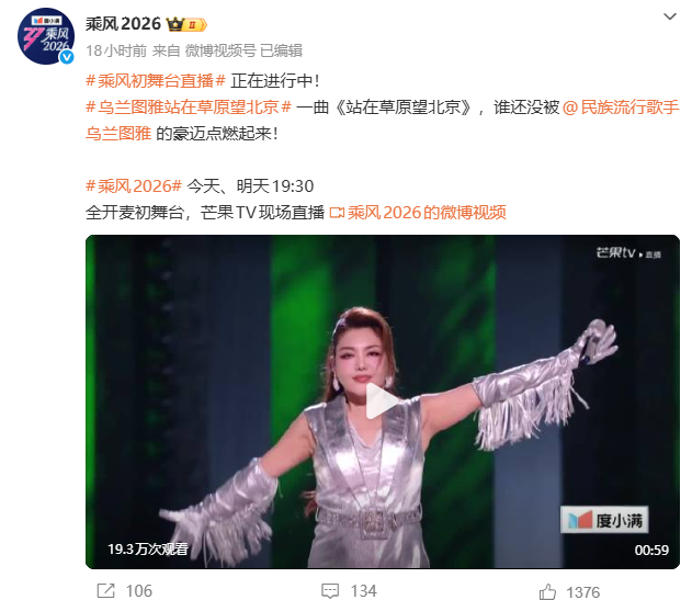 我们有理由相信,《乘风》这个经典IP,会因为引入直播的玩法迸发出不一样的质感,重新引发观众的观看兴趣。事实也确实如此,《乘风2026》第一期初舞台,姐姐们当场回应热搜话题、节目组根据现场反馈调整赛制等等,加强了互动性与新鲜感。而今年的《乘风2026》也创下了最好播放成绩。
