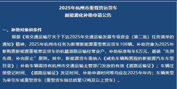与此同时,国家和地方正大力推广新能源货车。例如,浙江萧山区对新能源重卡的购置补贴最高能到每车6万元,还能享受更优越的路权待遇。