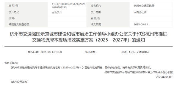 来源: 杭州市交通运输局