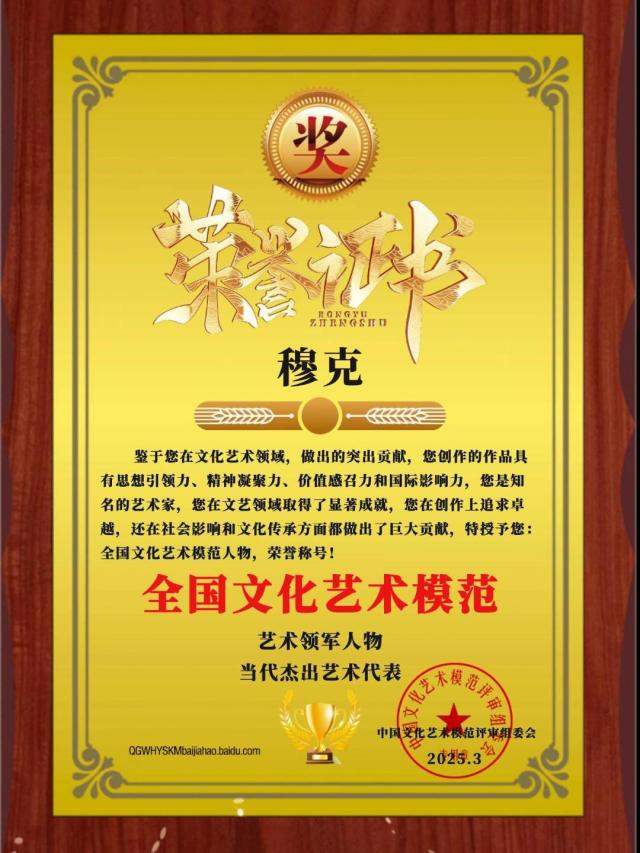 穆克老师其的书法作品受到书画界众多业内行家,社会各界朋友和俄罗斯及东南亚众多国家书画爱好者的高度赞赏并收藏。2019年,受全国第十一届世界易学大会之邀请,现场为塞纳尔塞内加尔总统和中国住塞内加尔大使馆分别写书法作品。2025年受全国两会之邀,为两会赠送书法作品?