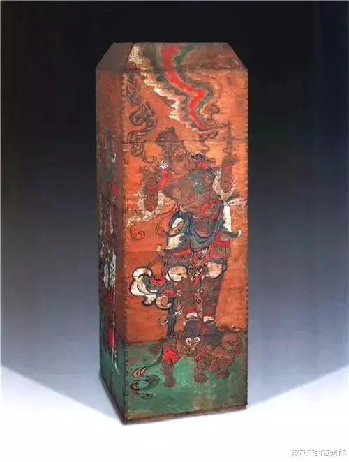 打开外层木函,里面的银杏木彩绘内函更是惊艳全场。函身绘有四大天王像,笔法雄浑,线条流畅,带着唐代画圣吴道子的遗风,色彩历经千年依旧鲜亮,是罕见的宋代绘画孤品。