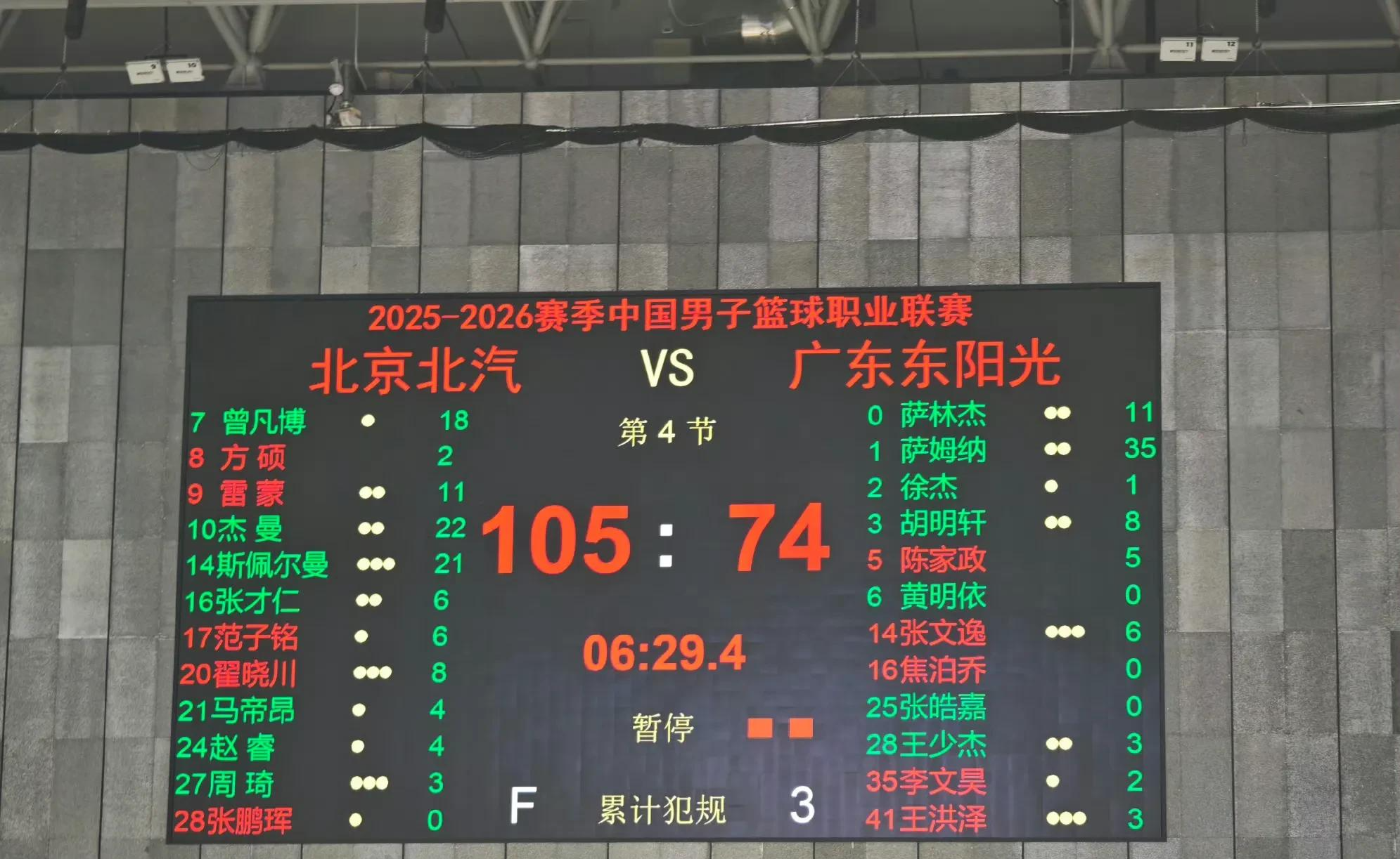 大比分落后的广东,下半场无力填坑,最终74-105惨败给北京,全胜记录被终结。