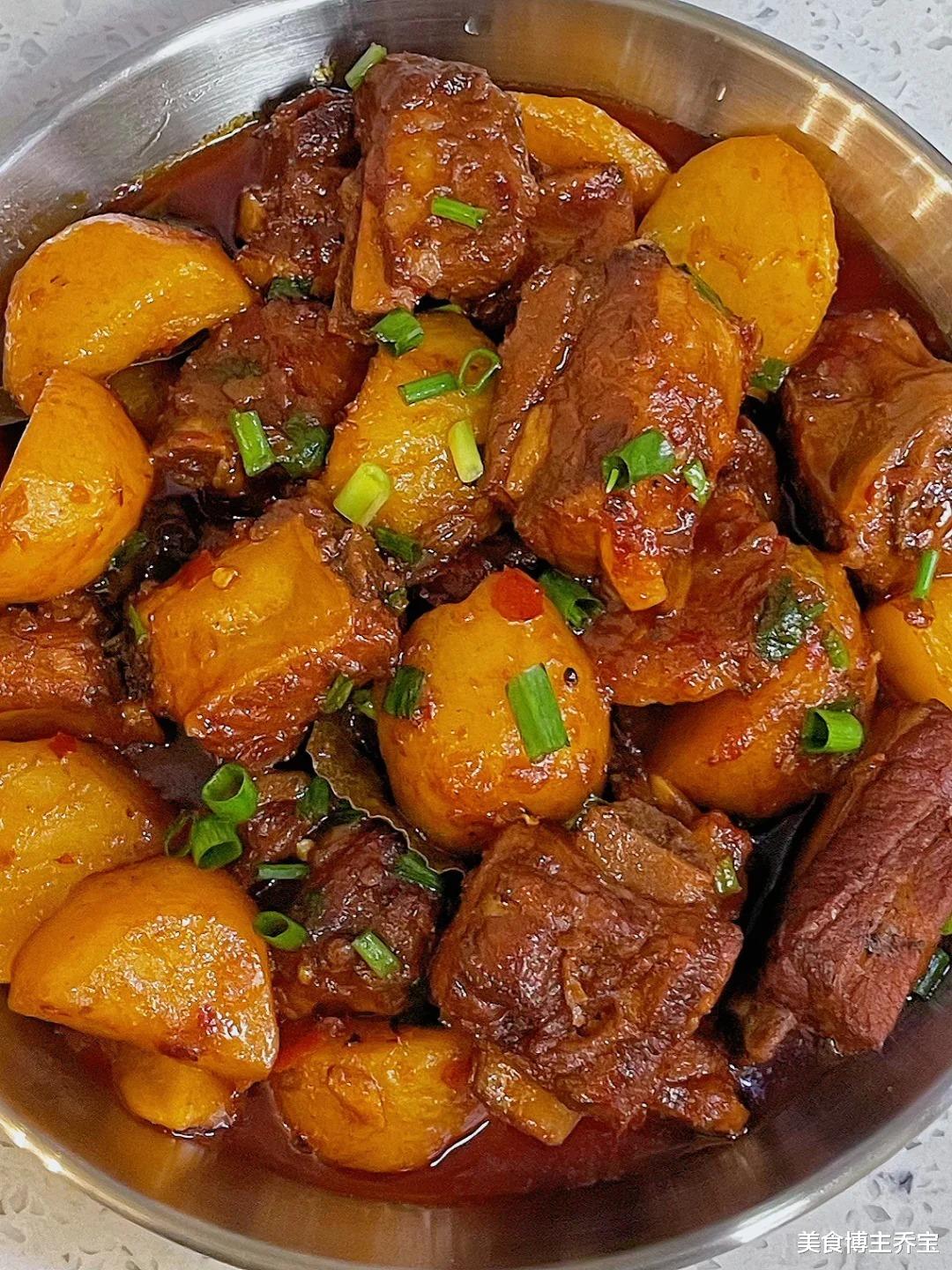 土豆烧排骨不仅美味可口,而且营养丰富。排骨富含蛋白质、脂肪、维生素等营养成分,具有滋阴壮阳、益精补血的功效。土豆则含有丰富的淀粉、膳食纤维、维生素 C等,具有健脾利湿、解毒消炎的作用。这道家常菜适合全家人一起享用,无论是日常三餐还是宴请宾客,都是一道不错的选择。