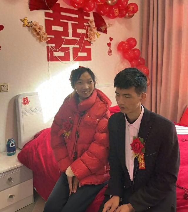 新郎患有小儿麻痹症, 新娘智力残疾,据悉智力相当于6岁儿童。 两个苦命的孩子抱团取暖, 何尝不是一种幸福的婚姻。
