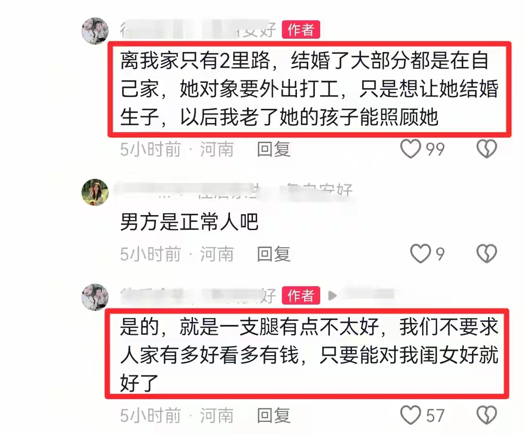 有网友说,这位母亲做的对,从长远看,女儿有个依靠,繁衍子孙后代,今后她本人老了,也有子女照顾。