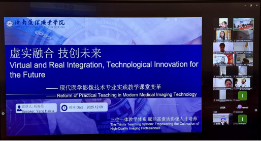 仪式结束后,“班·墨学院”首期线上培训开班。本期培训共吸引30余名印尼院校师生参与,学院医学技术系副主任杨海霞为印尼院校的师生带来了题为“现代医学影像技术专业实践教学课堂变革”的线上专题授课,课程聚焦“数智医学影像技术”前沿领域,课程设计紧扣“智能影像设备、AI辅助诊断、云端协同及质控管理”等核心模块,通过“理论精讲、虚拟仿真、案例研讨与实时操作”相结合的多元形式,确保学员在沉浸式互动中掌握关键技术,实现从理论到实践的能力跃迁。课程展现了学院在相关专业领域的教学改革成果与实践实力,获得了参训学员的积极反响。