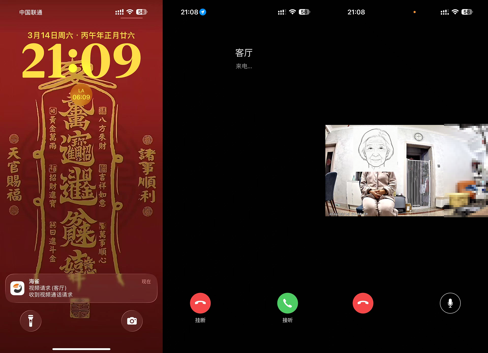 在海雀雀蛋的摄像头下面,有一个圆圆的按键,按它就可以开启通话。我们不但能够与亲人交流,还可以查看家中的情况,这一功能非常适合老家的长辈使用。