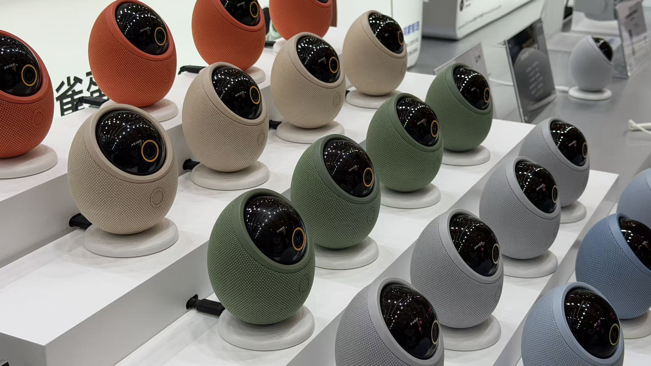 第一次见到它,是在上海AWE的展会之上。也就是因为这一次见面,被它狠狠地圈粉了。当时的工作人员进行了两个功能的演示,除了一只处在通话中的摄像头外,其它都会追随不同方位的声音,好奇地“望”过去。