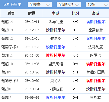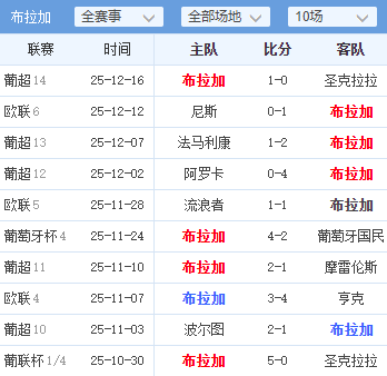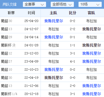 · 一边倒的历史交锋:近10次交锋,布拉加取得了7胜2平1负的绝对优势。并且,布拉加对埃斯托里尔保持着客场4连胜,这会给客队带来巨大的心理优势。