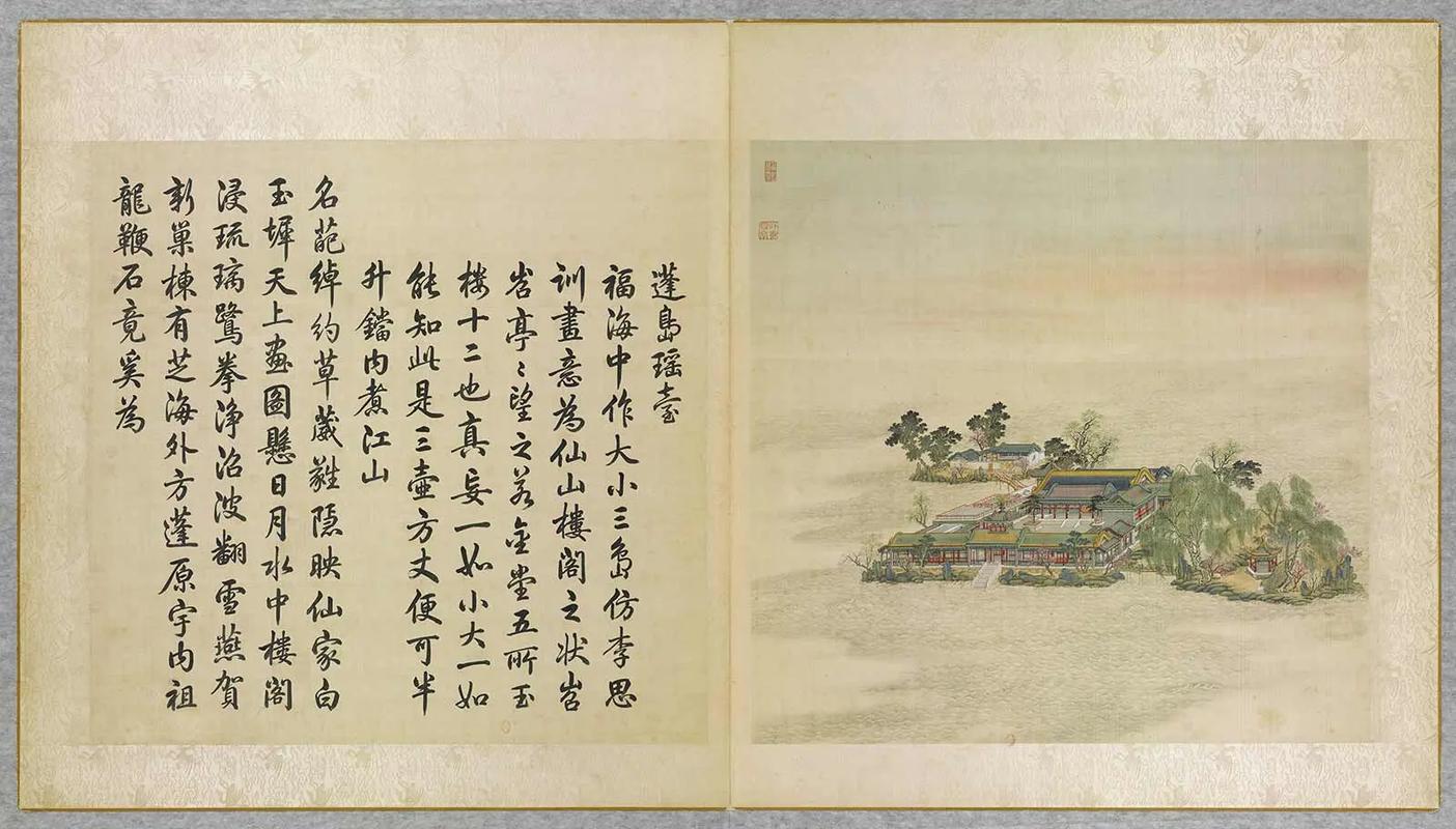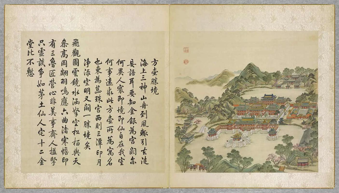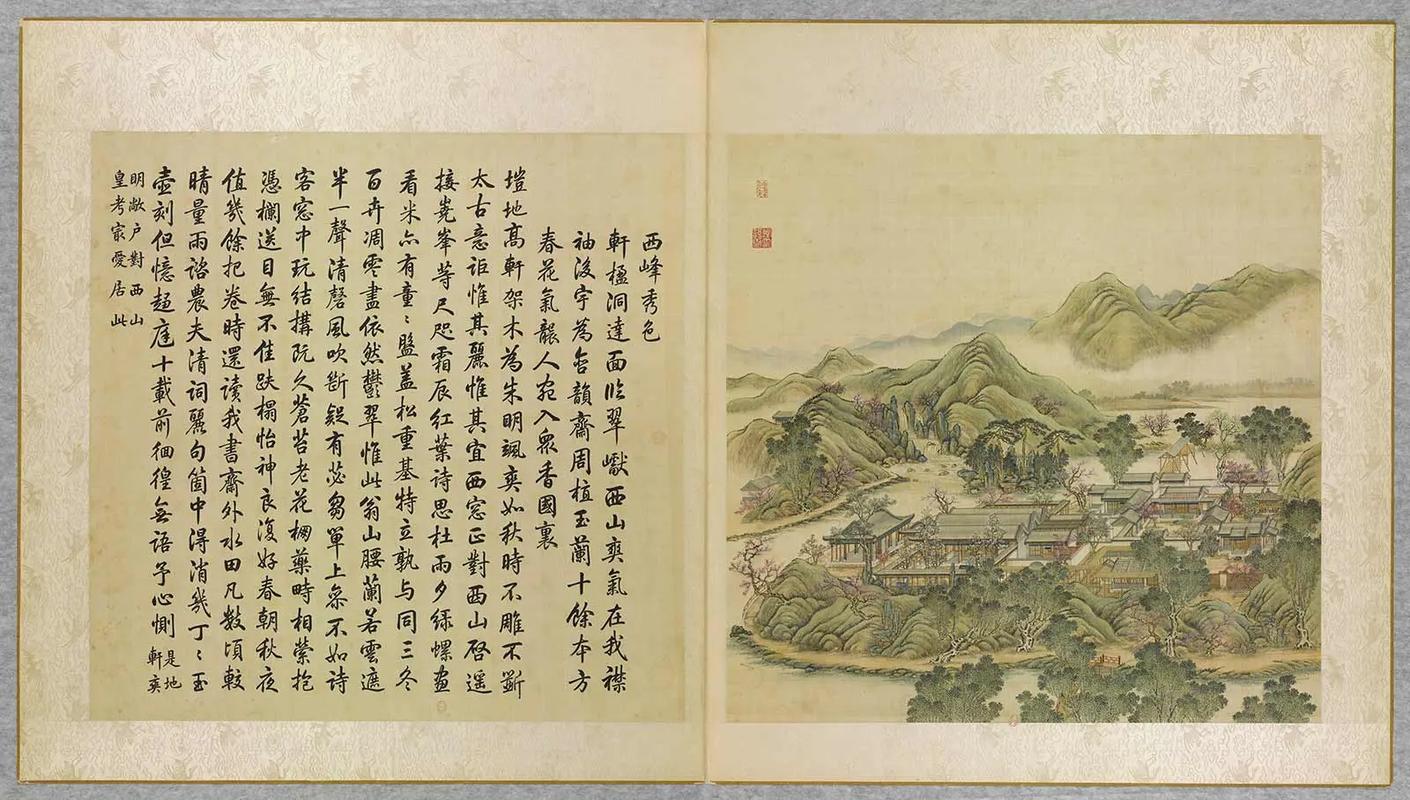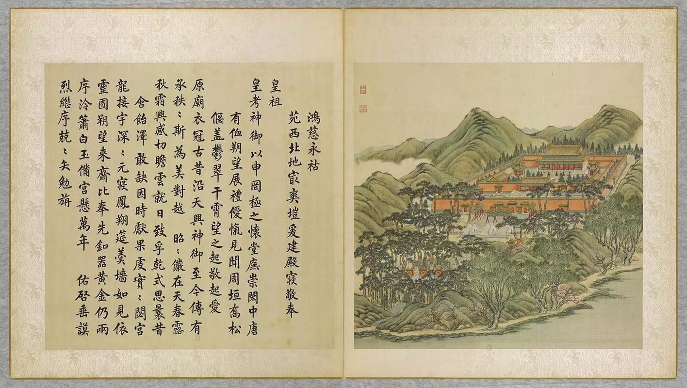 《圆明园四十景图》采用工笔重彩技法,细致还原每处景致的建筑布局与山水风貌,成为后世研究圆明园的核心史料。这套图册原本藏于圆明园,1860年英法联军焚毁圆明园时被劫掠,现藏于法国国家图书馆。如今的四十景,是以这套图册与《日下旧闻考》中的记载为依据还原的概念。