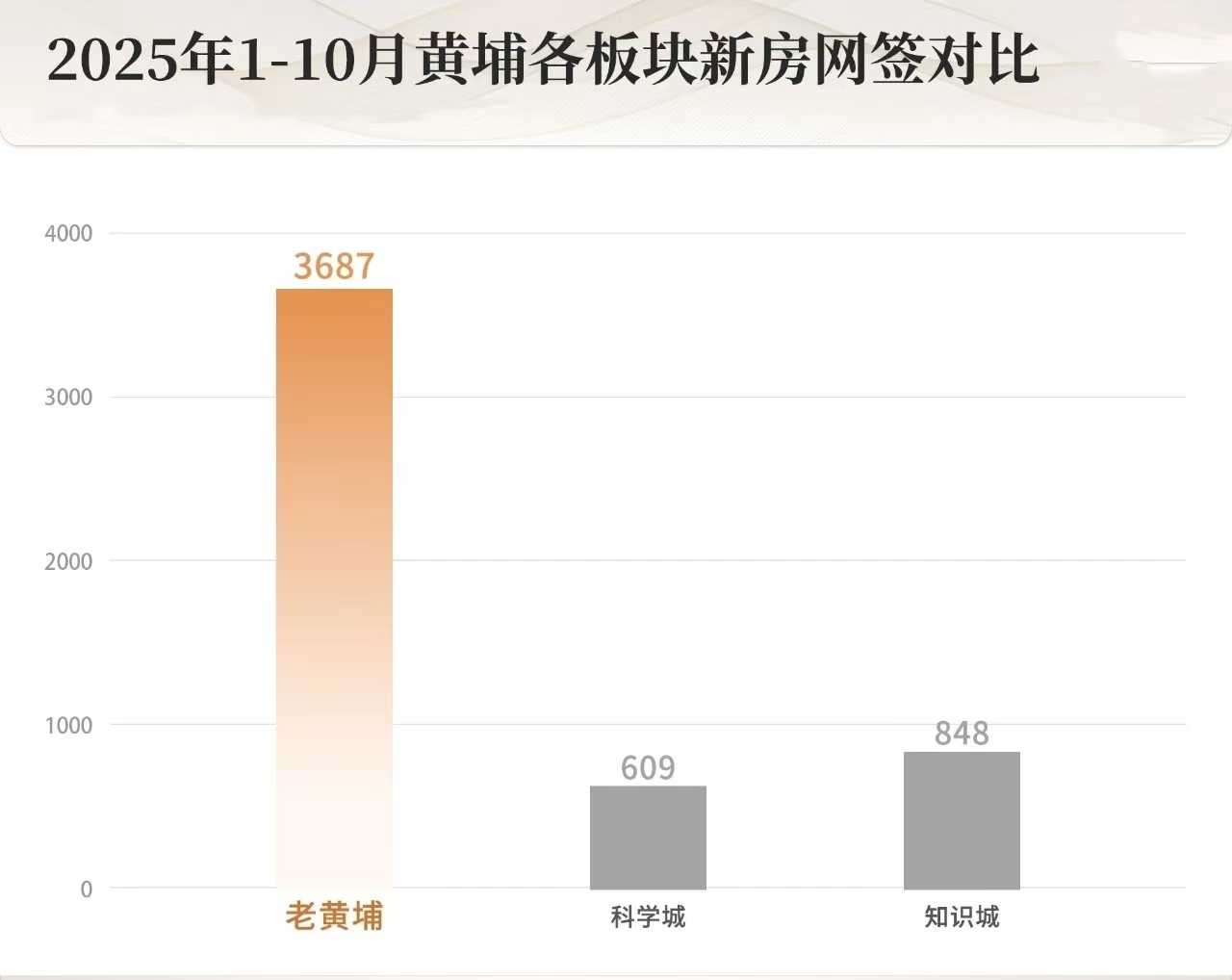今年老黄埔有多强,看个直观数据:中指院网签显示,今年1-10月,全黄埔总共网签5144套新房。而单老黄埔一个板块,就卖出了3687套新房,在整个黄埔市场中,贡献度高达71%。