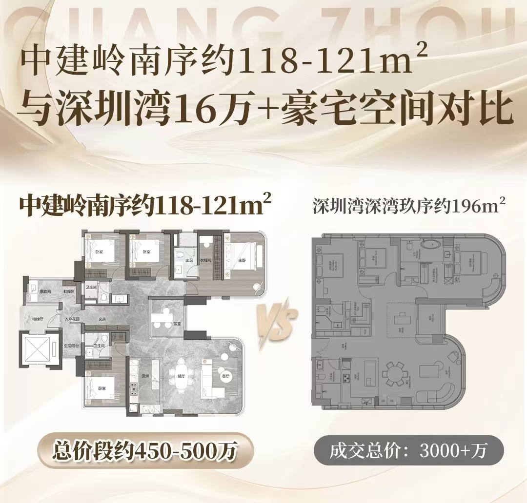 3、老黄埔的新盘,产品越做越超标,市场吸引力在走强。这在两个方面体现最为明显:一是新规、超新规产品,在老黄埔成为主流;二是老黄埔很多新盘,基本能实现高品质呈现。先来看新规产品,老黄埔现在的新盘,由于报建时间刚好,普遍都吃到了利好。像黄埔未来城,直接把四代空中庭院的设计,带到了老黄埔。再比如,中建岭南序和未来方洲二期,也是超新规作品,使用率均在120%以上。其中,中建岭南序84平居住空间相当于万科城市之光126平。建面约118-121平以上全部是“双全景舱产品”,深圳湾数千万级豪宅深湾玖序“同款”。相当于300多万的预算,就能买到同板块500多万的居住体验。