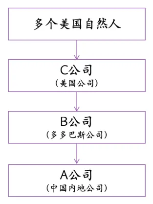 【案例】境内A公司的外方股东为巴巴多斯B公司,B公司的上层股东为美国A公司,最终股东为多个美国自然人。股权结构如下图。2017年12月,B公司取得境内F公司派发的2011—2013年度股息所得1300万元,并依据中国—巴巴多斯税收协定及议定书,按5%优惠税率申报扣缴企业所得税65万元。