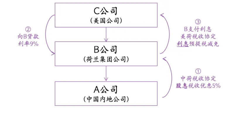 【案例】境内A公司由荷兰B集团控股,B集团最终受控于美国某公司。2016年8月,A公司向B集团分配利润600余万元,荷兰B集团公司于2017年1月通过A公司在扣缴申报时一并享受税收协定待遇,按5%的优惠税率缴纳企业所得税30余万元。
