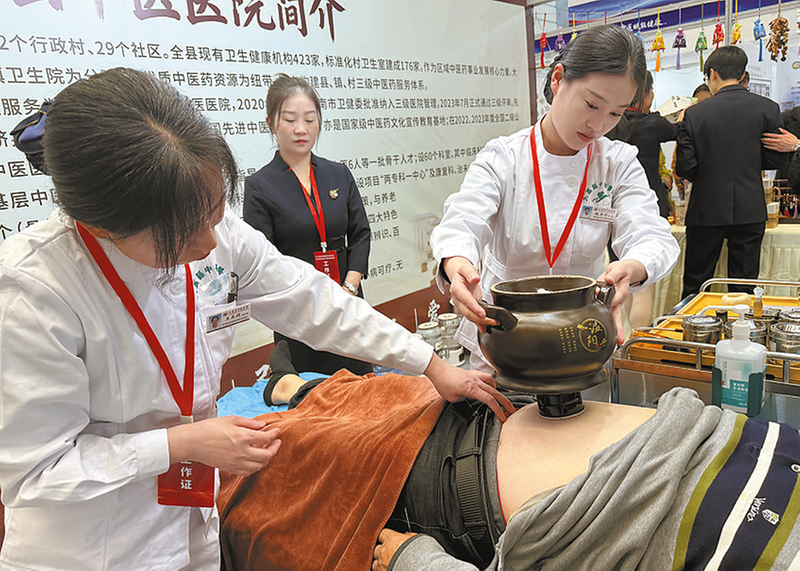 将中药材与食材相结合的药膳美食 中药糕点赚足眼球 展台成“人气打卡地” 群众体验中医传统疗法本组图片均由通讯员 李世居 摄 11月7日至9日,在第六届西部国际采购展览会上,大荔县中医医院以“中医+非遗”为核心主题,通过五大板块全方位展示传统中医药文化与非物质文化遗产的融合魅力,推出的中医药文创产品“火出圈”。 “茯苓山药馒头带着淡淡的药香,味道真不错,回国后我要试着做。”7日,在展览会上,来自马来西亚的客商品尝过大荔县中医医院推出的药膳美食后,连连称赞。 在药食膳品品鉴台,大荔县中医医院依据“未病先防、既病防变”的中医理论,将中药材与食材巧妙搭配,通过炖、焖、蒸、煮等多种烹饪技法,推出了养生粥、药膳汤、草本茶、中药花馍等50多种药膳食品及文创产品。工作人员一边邀请群众品尝,一边细致讲解:“这款黄芪枸杞粥能补气养血,适合秋冬滋补;陈皮山楂饮则有助消化,解腻又养生。”群众在品尝美味的同时,学到了“药食同源”的养生知识,深刻体会到中医药“治未病”的智慧。 在本草非遗手工坊内,中药香囊制作和中医主题非遗剪纸体验区人气高涨。许多群众深入了解中医药文化的深厚底蕴和非遗技艺独特魅力的同时,感受传统手工艺与中医药的完美结合。 大荔县中医医院还组织经验丰富的中医师团队,在现场为群众提供免费中医辨证、健康咨询和诊疗建议。医师通过望闻问切,针对失眠、颈椎不适等常见问题,提出个性化的调理方案。适宜技术体验站更是成了“人气打卡地”,针灸、推拿、拔罐、艾灸等传统疗法集中亮相,专业技师现场操作演示,不少群众体验后直呼“肩膀舒服多了”“艾灸完浑身暖暖的”…… 在展览会上,大荔县中医医院以创新形式让中医药文化与非遗技艺相互赋能,既展现了大荔县中医药事业发展成果,更搭建了传播传统中医药文化的重要平台,让更多人认识中医、爱上非遗,让中医药深度融入百姓生活。(来源:渭南日报 通讯员 李世居 马竹蕊 马文平))