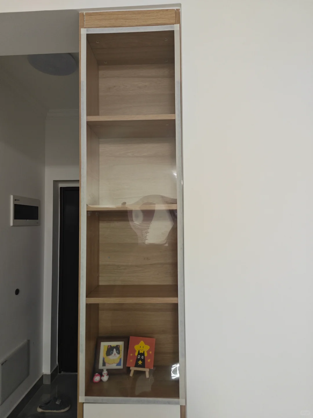 网友@晓峰 的分享:我家当初做了很多的开放格装饰柜,就做了一年我就后悔了,平时收拾的时候都要一个个擦,真的麻烦,我现在拿着透明塑料膜挡着,但是真的丑,真的后悔做开放格了。