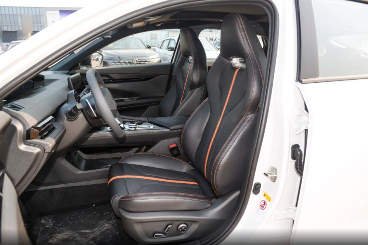 整台车的底盘调校偏运动,方向盘指向精准,低速轻盈易操控,高速沉稳,支持四种转向助力模式,运动模式下路感清晰,适合激烈驾驶。在快速过弯的时候,悬架侧倾控制优秀,弯道稳定性较强,但在颠簸路面上的滤振较为直接,舒适性有所牺牲。此外,因为轮胎并没有使用常规的静音性轮胎,所以当车辆高速行驶时,胎噪占到了座舱干扰噪音的绝大多数。具体来看,车速超80km/h以后,风噪和胎噪明显,高速120km/h以后需提高多媒体音量,胎噪在非铺装路面上更为突出。怠速时,发动机抖动轻微,深踩油门时发动机噪音比较突兀,尤其是空载高转速的时候。