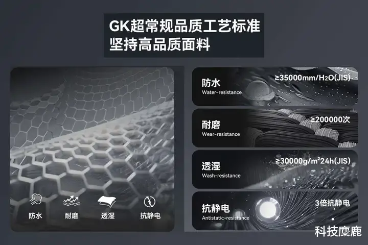 面料黑科技:自己研发的STOPS-X七防无氟面料,还是五层复合的,不含那些有害的氟化物,又环保又耐用,再加上SOPE-AIR防水防磨涂层,据说能做到“刀刮不烂、油浸不渗”。