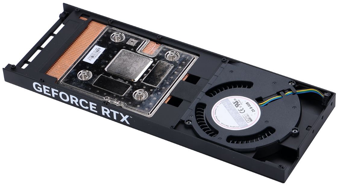 显卡本体采用合金压铸的散热外壳,左侧是大面积的纯铜散热鳍片,右侧则是一把9010规格的高转速涡轮风扇,全黑配色,整体设计风格简单但质感拉满。不含挡板三围267*111*20mm,单槽设计,适合多卡工作站/服务器,同样也能适配不少极限ITX机箱。